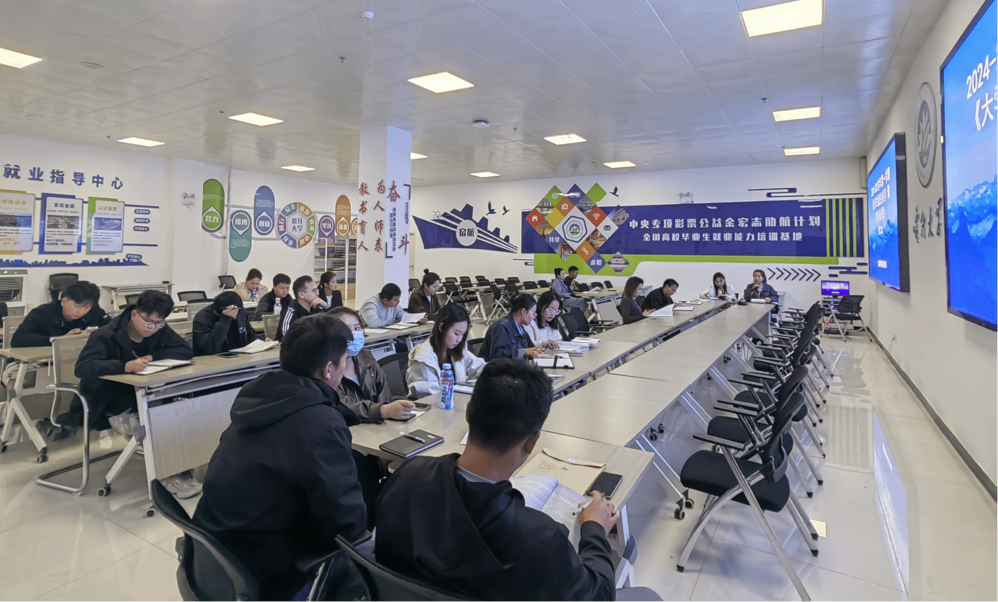 为推进我校《大学生就业指导》课程的规范化、专业化建设,提高教师的教学水平,促进教育教学质量的提升,同时为确保2024年“中央专项彩票公益金宏志助航计划”培训工作落实落细、取得实效,助推我校毕业生更加充分高质量就业,10月14日下午,就业指导中心在新泉校区一站式学生社区综合管理服务中心108会议室组织开展《大学生就业指导》课及2024年“宏志助航计划”培训集体备课活动。各学院课程负责人与讲授“宏志助航计划”培训的老师共30余人参加本次集体备课。