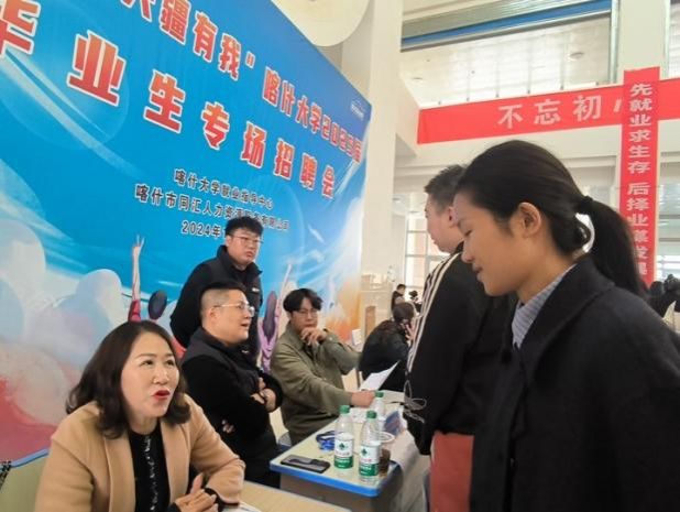 为深入贯彻党的二十大、二十届三中全会精神和党中央、国务院关于促进高校毕业生就业决策部署,搭建毕业生和用人单位求职招聘的平台,促进困难群体毕业生高质量充分就业,11月20日我校举办“宏志助航 兴疆有我”2025届毕业生专场招聘会。本次招聘会由就业指导中心主办,新闻传播学院、外国语学院、音乐与舞蹈学院、美术学院、电子与通信工程学院、喀什市同汇人力资源服务有限公司承办,有1500余名毕业生参加。