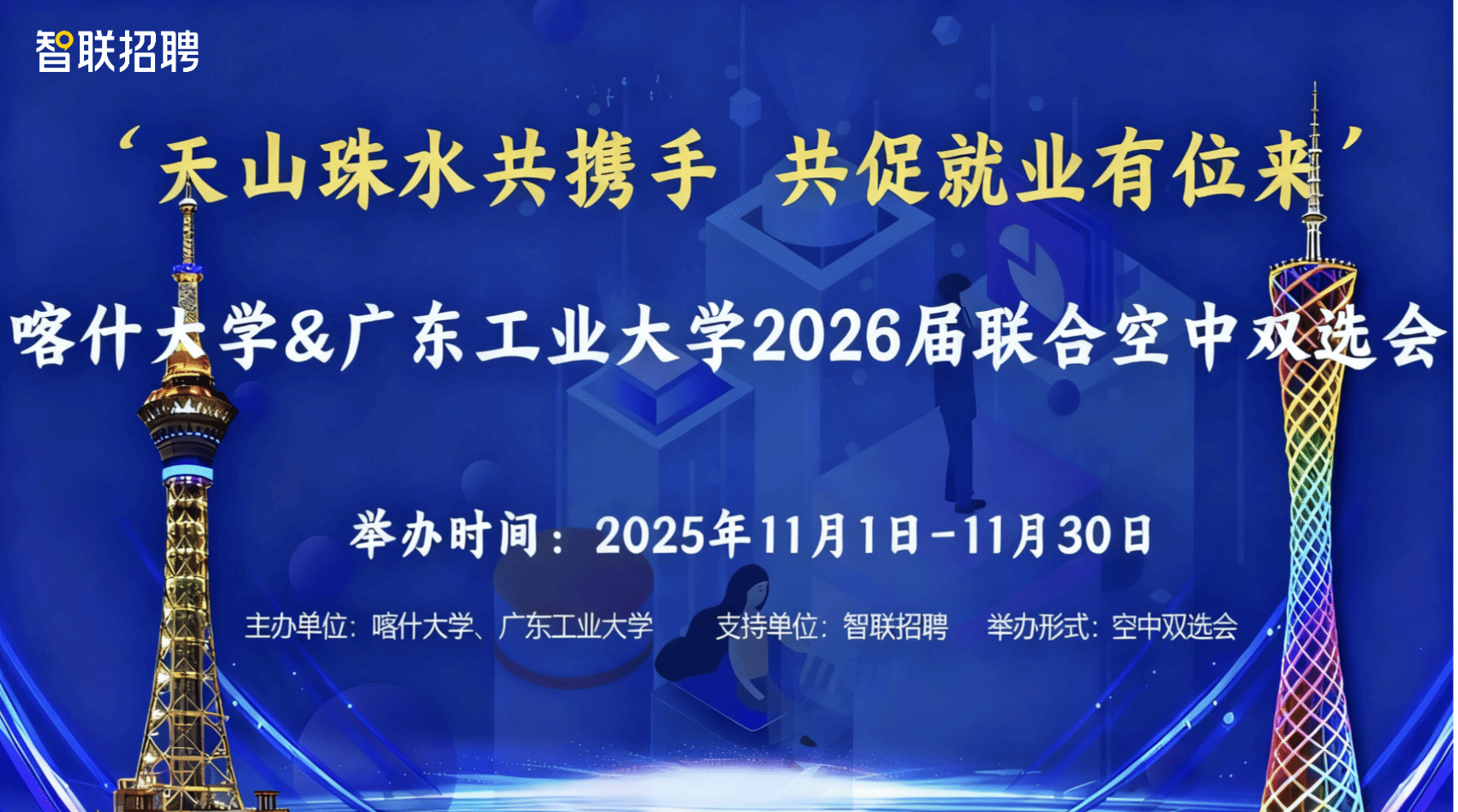 为进一步搭建人才供需桥梁,助力用人单位选才和毕业生充分就业,我校计划举办‘天山珠水共携手 共促就业有位来’喀什大学&广东工业大学2026届联合空中双选会,诚邀贵单位莅临参会,广纳贤才!现就有关事项通知如下: