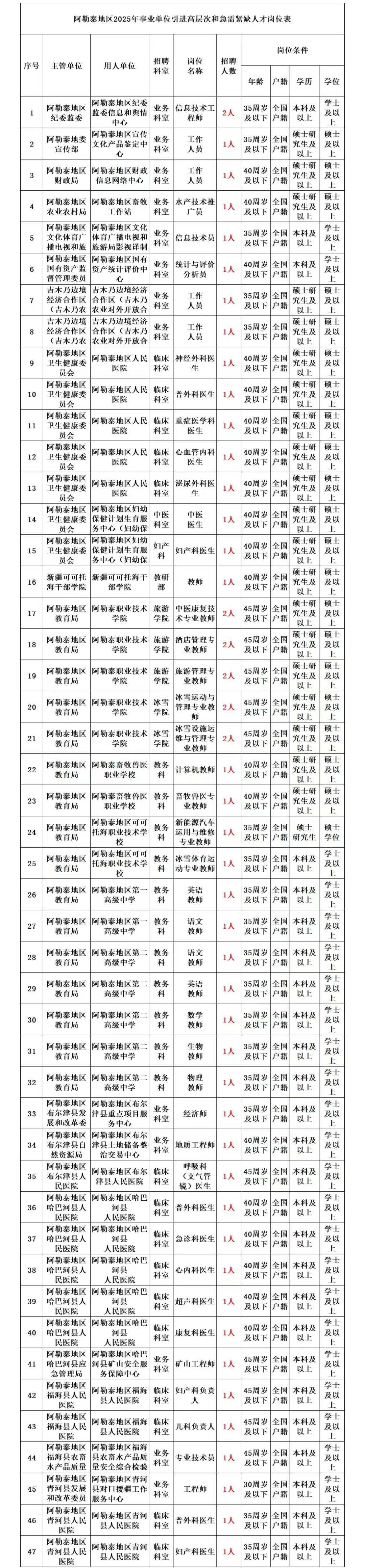 阿勒泰地区2025年引进高层次和急需紧缺人才公告